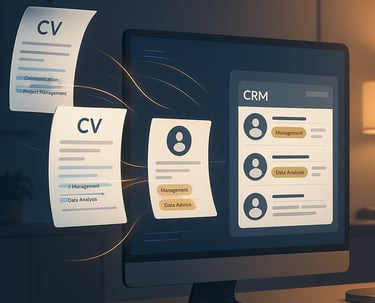 Automatically scans, evaluates, and imports qualified CVs directly into your CRM with intelligent tagging by skillset, experience level, and location preferences.